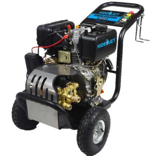 Hidrolavadora Hidrojet Autónoma Diesel especialmente diseñadas para usos profesionales, brindando excelentes prestaciones de calidad y uso. Esta provisto de todos los sistemas de seguridad para soportar los frecuentes maltratos que suelen sufrir estas máquinas. Las características de esta máquina, permiten la posibilidad de elevación por montacargas u otros medios, así como también los traslados por superficies irregulares.